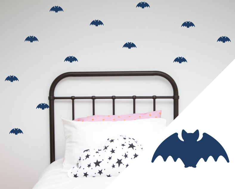 Our classic Bat wall stickers have been a staple of the range for years. Imagine then scattered over the wall or even have fun with them escaping out of the wardrobe or lower bunk.