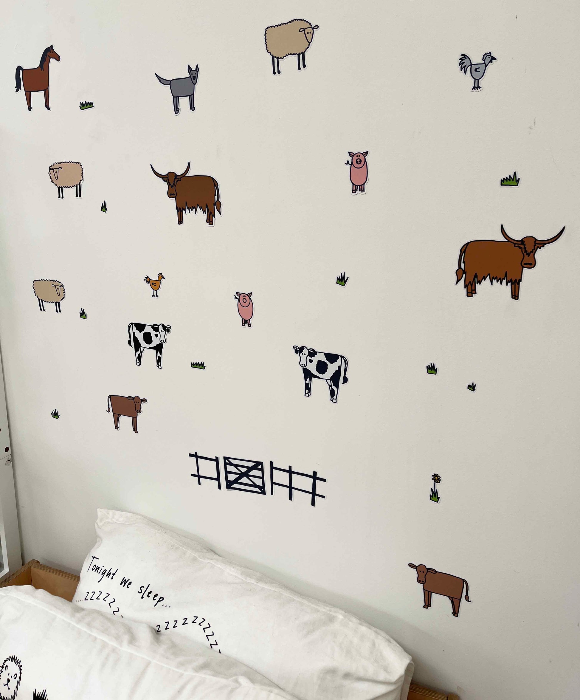 Down on the farm wall stickers feature a selection of our favourite Farm Animals.