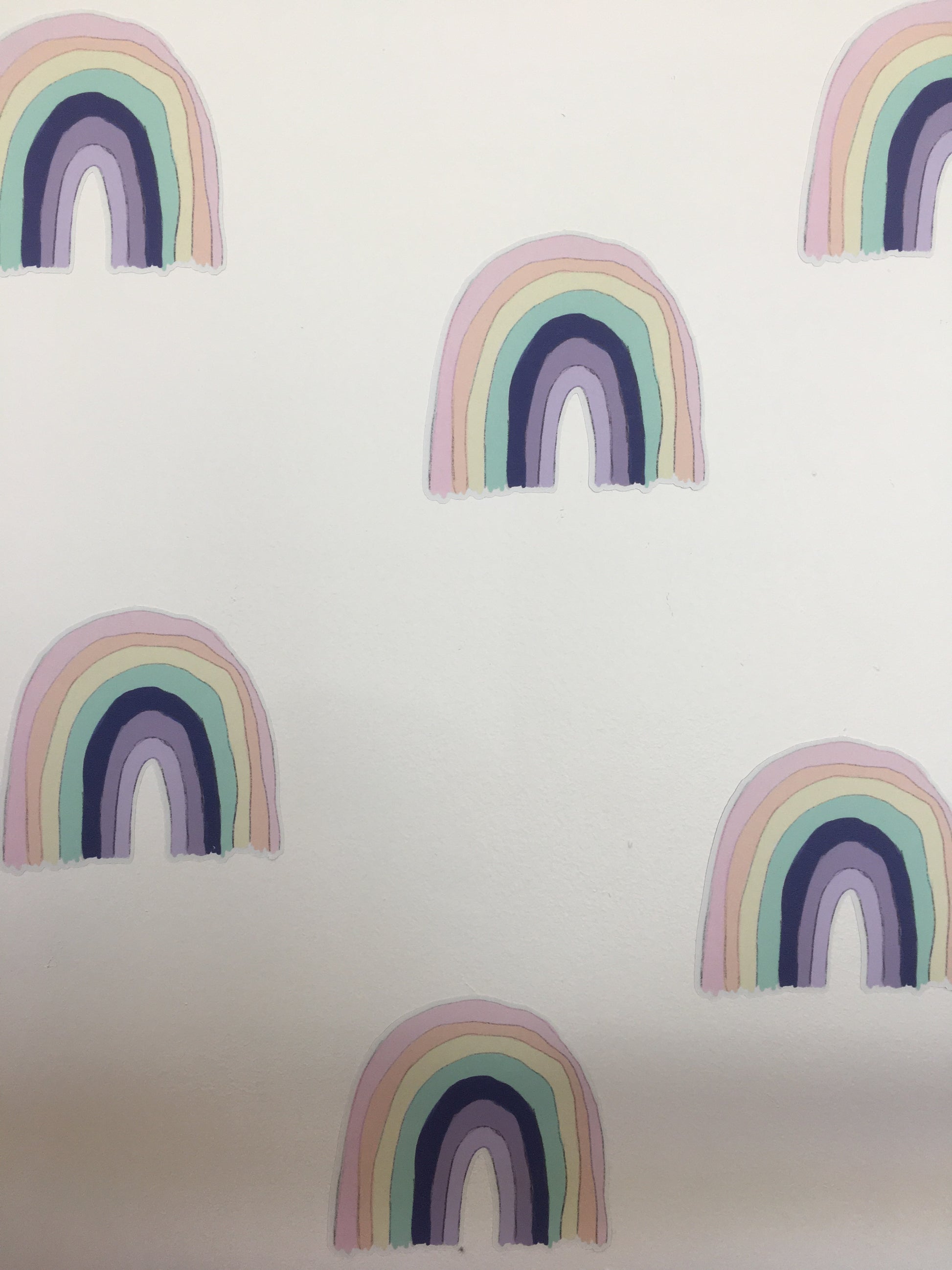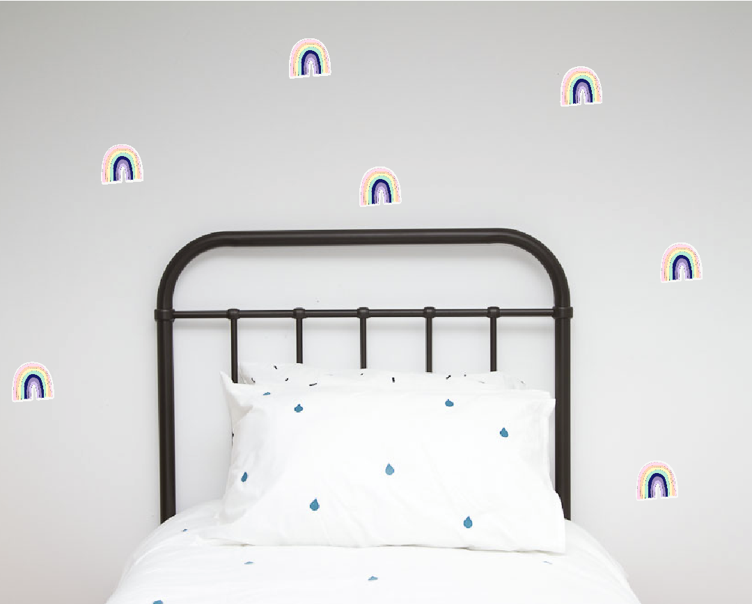 Rainbows have a small white bleed around each one - made on our popular fabric wall sticker which means they are removable and repositionable.