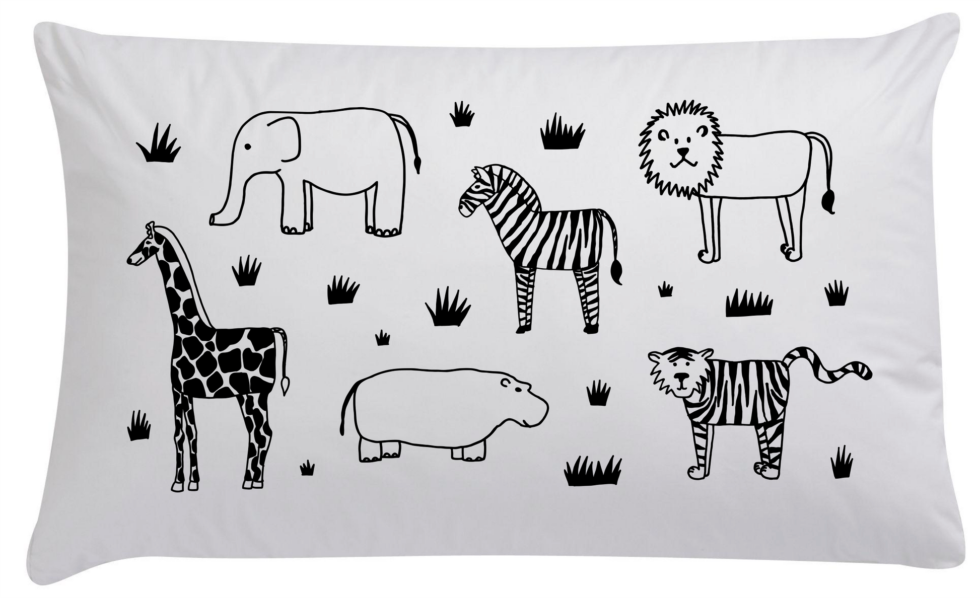 Original Safari Illustration printed on to 100% Organic Cotton Pillowcase using eco friendly water based Inks.