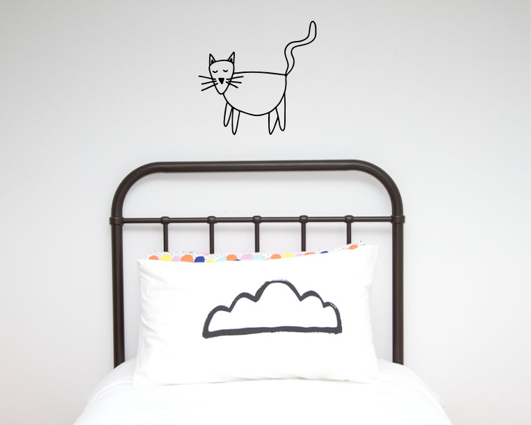 Original hand drawn illustration of a Cat, matches back with our Animals pillowcases and Art print.