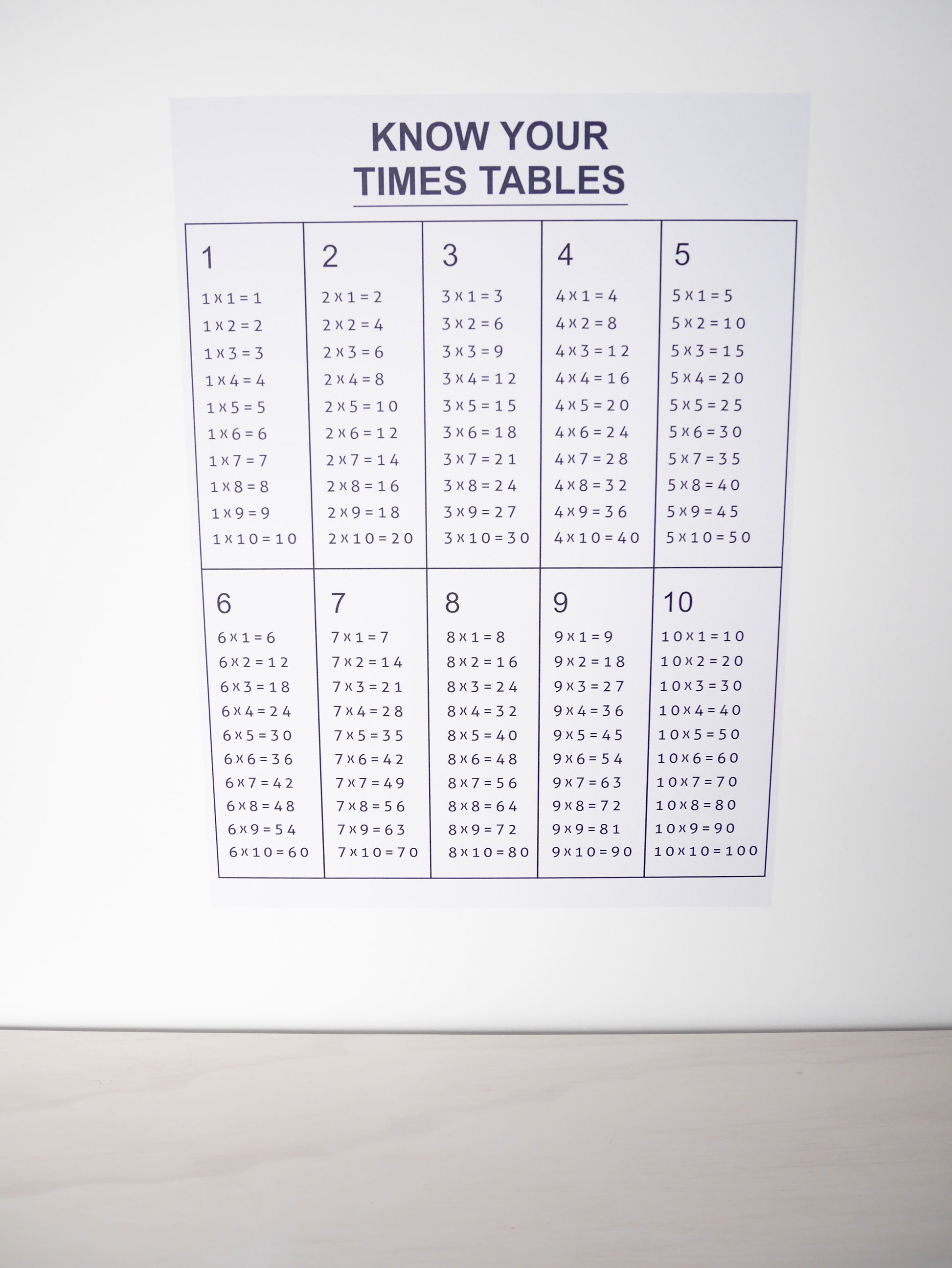 Times Tables removable Poster