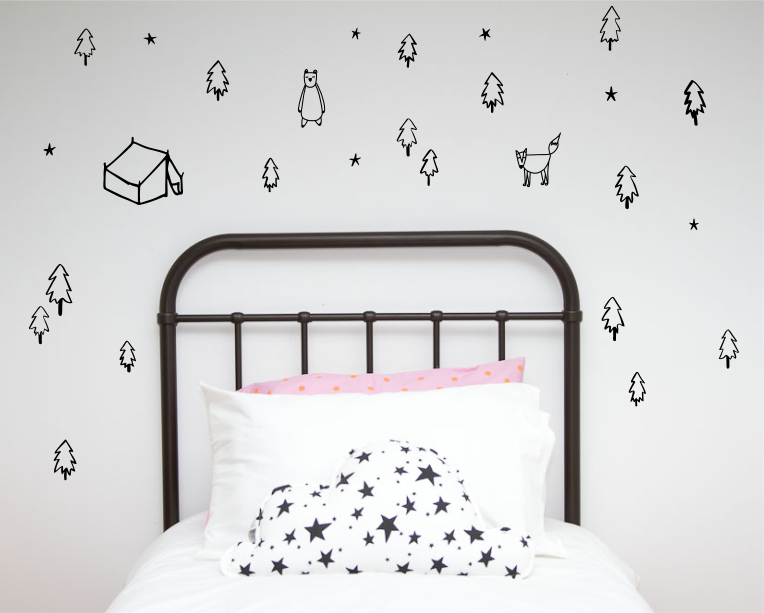This super cute Woodland scene allows you to cut each feature out and place wherever you please. Original Illustrations include many trees of different sizes Fox, Bear, Stars and Tent.